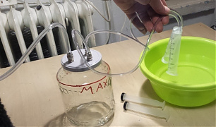 - Minden alkatrészt beleteszünk az üvegbe. Hypót öntünk a szívócsőbe, hogy az teljesen átjárja a csövet. Majd az alkatrészekre is öntünk hypot.