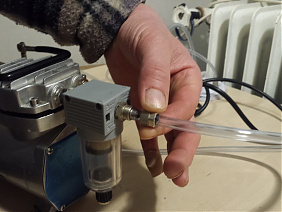- Szereljük össze és ellenőrizzük a nyomást (vákuum mértékét ~ - 500 mbar)